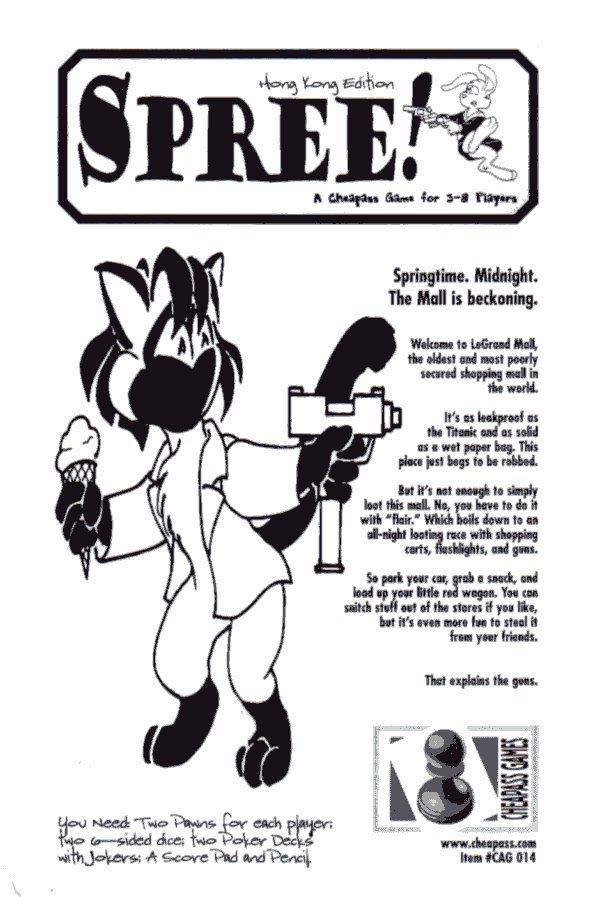 The 2nd edition is called Spree! Hong Kong Edition and includes a variant of "a bunch of extra violence we've never tested", such as Running People Over. There is also the promise of a Mecha-Zoid Spree.