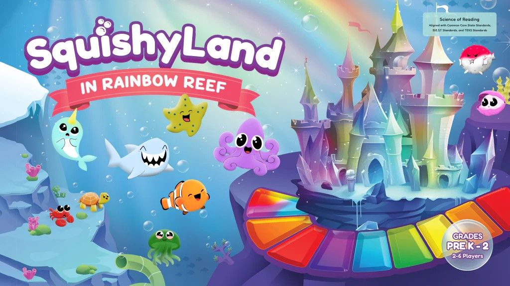 Descrizione: Squishyland comes with 8 card decks, each geared to a different grade level. Take turns drawing a card, completing the challenge on the card (usually involving phonics), and then moving to the board space designated by the card in Candyland fashion. The first player to reach the final space on the board is the winner.