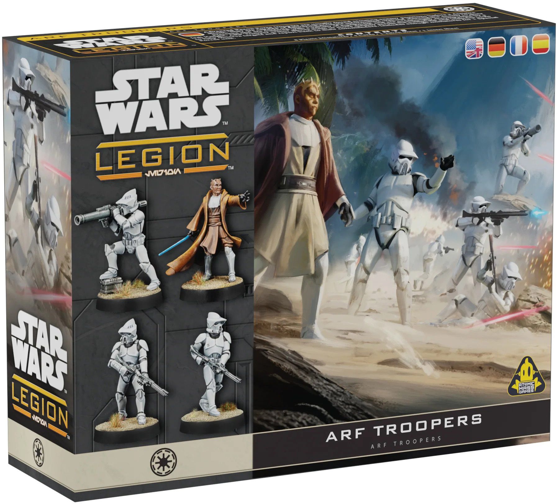 Star Wars: Legion - ARF Troopers contains 7 finely sculpted ARF Trooper miniatures, enough for one Special Forces unit, along with new unit and upgrade cards to gain the upper hand on the battlefields of the Clone Wars.