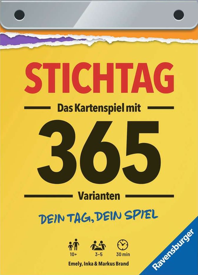 Descrizione: The basic rules of the trick-taking game Stichtag are straightforward: Each player starts with twelve cards in hand, red is trump, and players want to collect the most tricks to win.