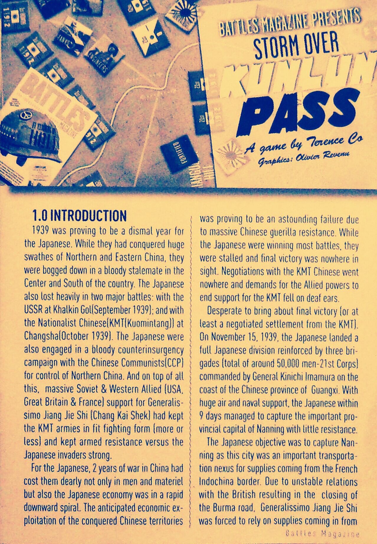 Descrizione: "Storm Over Kunlun Pass, 1939" is a two player wargame simulating the Battle of Kunlun Pass from December 18 to 30, 1939.