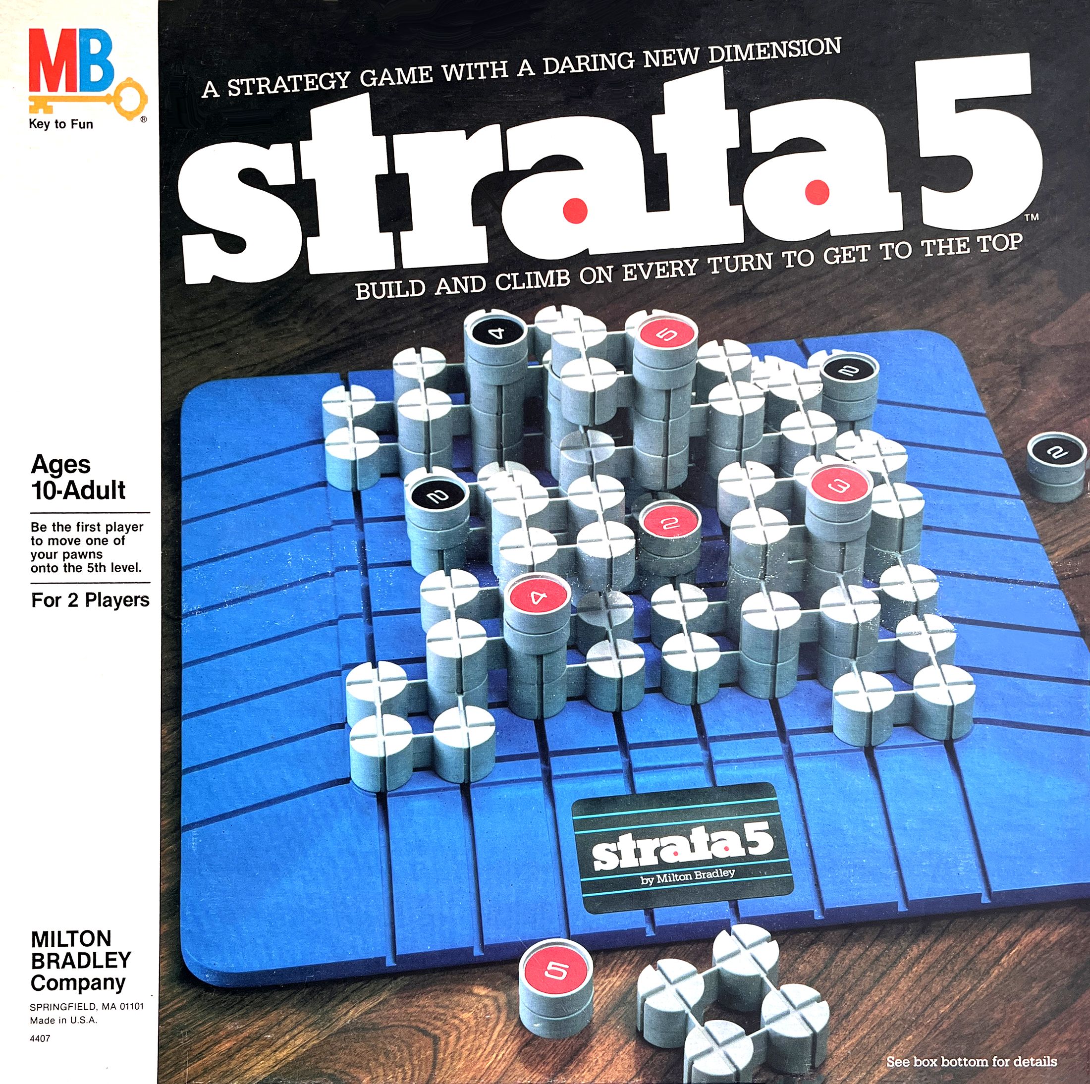 Descrizione: The Strata 5 challenge is to build and scale a structure that's 5 levels or 5 strata high. To do so, you must move your pawns and position building block playing pieces…and you must do both of these actions on every turn. As you and your opponent position blocks, move your pawns up the levels searching for the fastest way to the 5th strata. On each turn, you must move two pawns and position one block. If you climb with caution and construct with cunning, you'll move one of your pawns onto the tip-top strata first and win the game. When moving and building, try to trap the enemy pawns inside the structure, blockade them so they cannot move, or capture them and move them as your own. Strata 5 enforces strict building codes on pawn movement and block placement. But if you're "level-headed" enough to build, climb, block, and capture strategically, you'll reach the 5th level first!