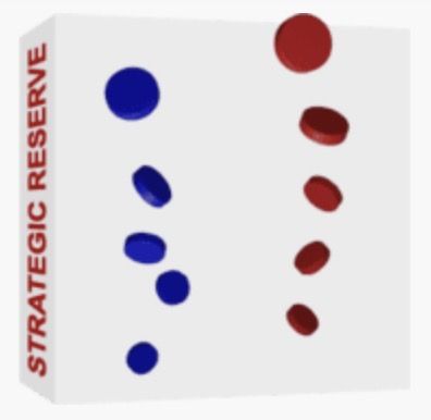 Descrizione: Strategic Reserve is a game of skill and luck. The 6x6 square board is initially set up with 6 red and 6 blue checkers, arranged in a square of alternating colors. You begin with 7 checkers of your own color in your "reserve." Begin your turn by rolling the dice. A dice roll defines one square on the board. Remove zero or more enemy checkers, based on the dice roll (explained below), and return them to your opponent’s reserve. Then place a checker on the board.