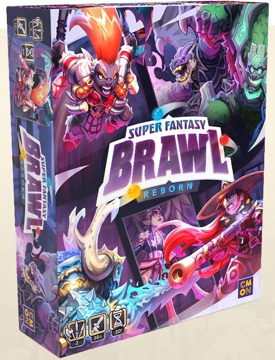 Descrizione: In Super Fantasy Brawl: Reborn, players select a team of three champions and combine their unique action cards to create a synergistic action deck. The game is faction-free, so players can choose any combination of champions they wish. Each turn, the players use their hand of action cards to maneuver, attack, displace enemies, and claim objectives to score victory points.