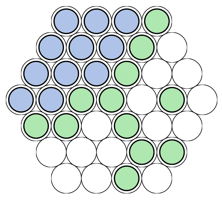 Setup: Surmount is played on any hex hex boar of side length 4 or greater. 4 and 5 are the standard sizes. Each player has an unlimited number of stones in their color.