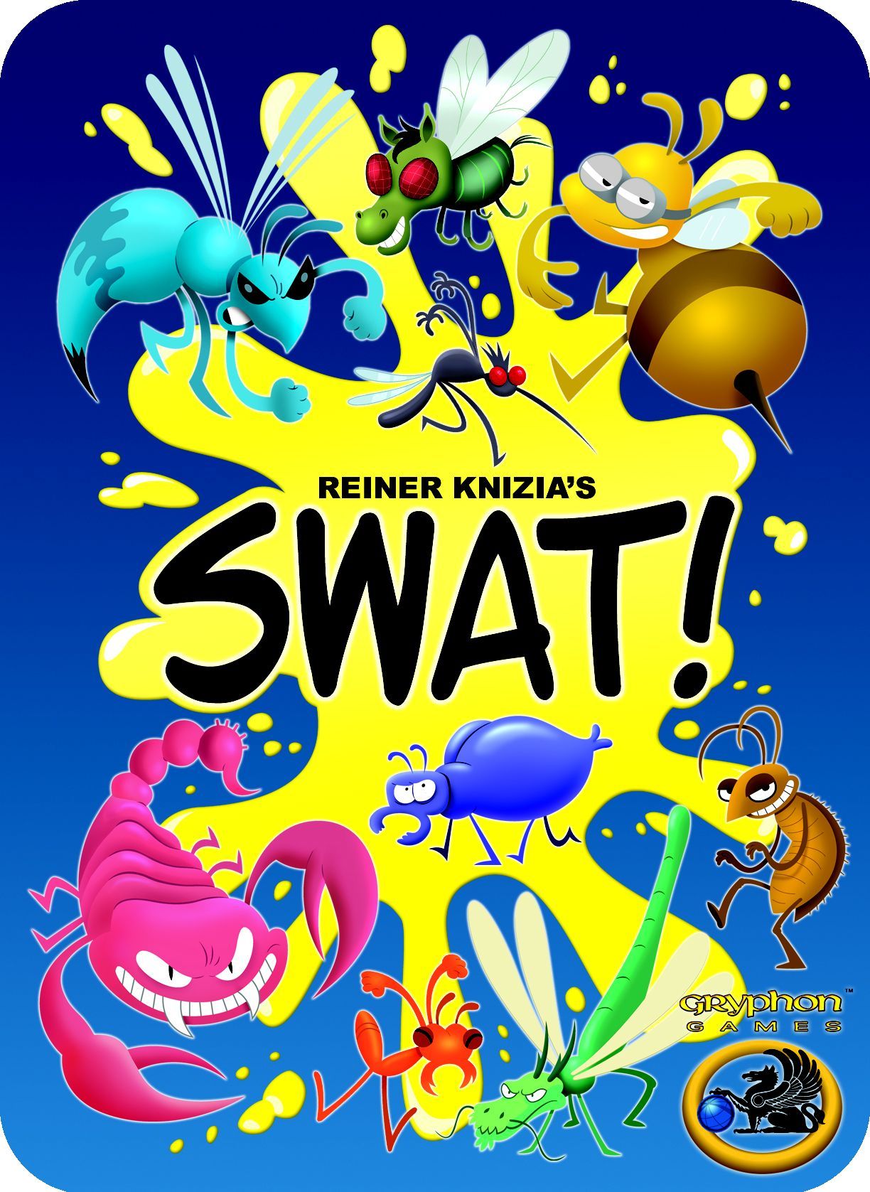 SWAT! is about capturing cards. A dealer turns over cards one-by-one, until someone decides he wants the exposed cards and hits the colorful "SWAT!" board. That player then becomes the dealer and the same process continues until all players have "swatted" three times or the deck runs out. Your challenge is to remember what you have already swatted and decide how far you can push your luck before another player swats the stack. The artwork is fun, imaginative and might get a little bit under your skin!