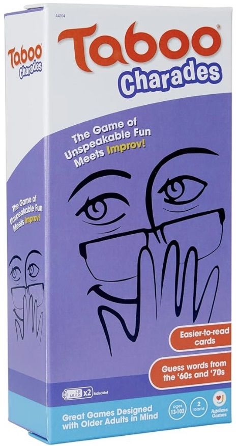 GET ACTIVE WITH IMPROV: Who says games should just be sitting around? Taboo Charades adds a unique twist by including charades cards that get older adults moving and acting—no talking allowed! It’s a perfect way to add light physical activity and laughter to any game night, encouraging elderly players to stay active and engaged.
