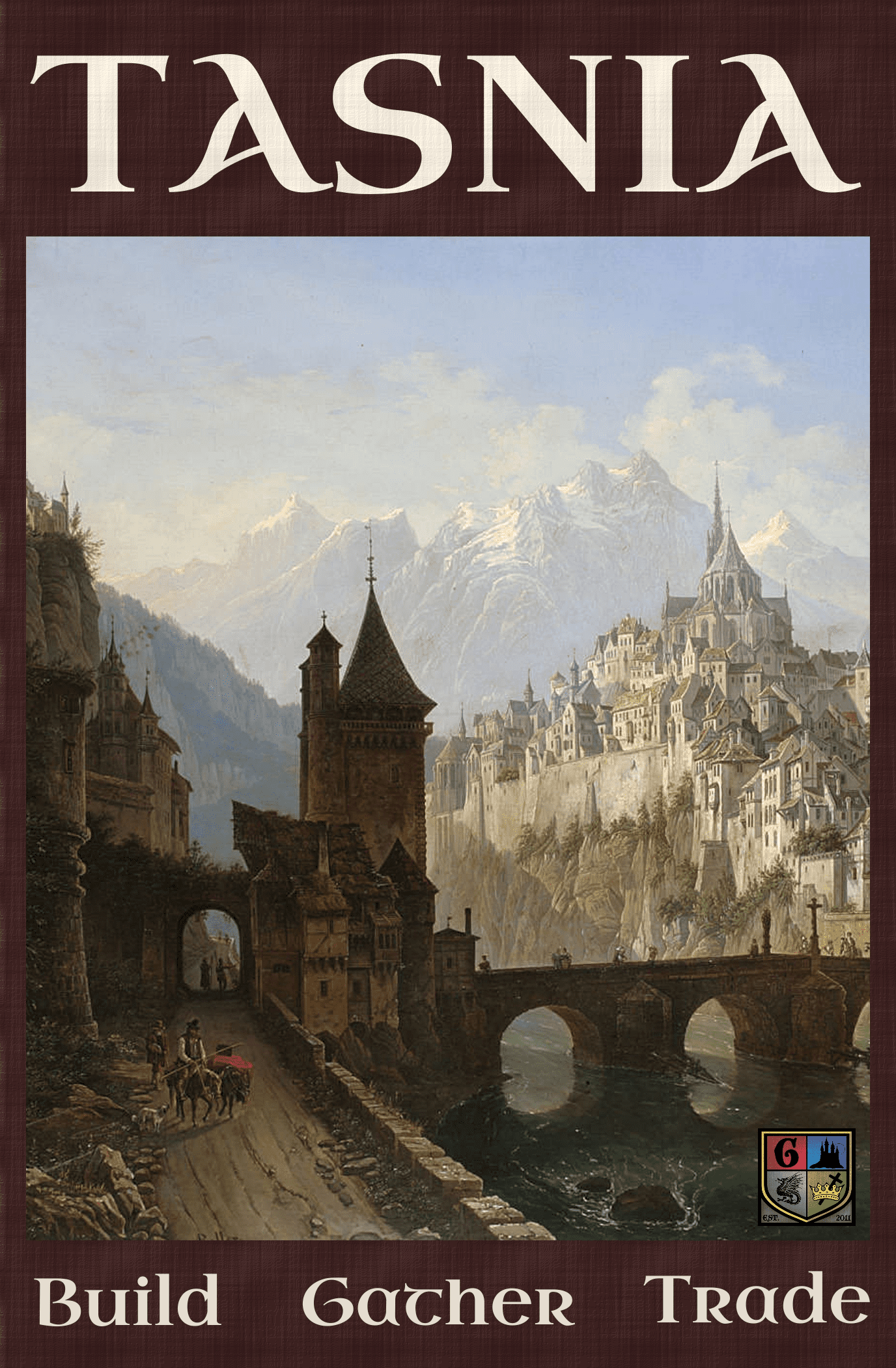 Descrizione: Tasnia is a resource gathering game that also employs tile laying. Players draw resources to form a hand of 6 cards and they spend these resources (Wood, Stone, Iron, Laborer, Carpenter, Mason, and Gold) to purchase portions of a building. These portions come in the form of tiles that can be used to construct medieval buildings. Completed buildings score players points. Incomplete buildings are worth far less.