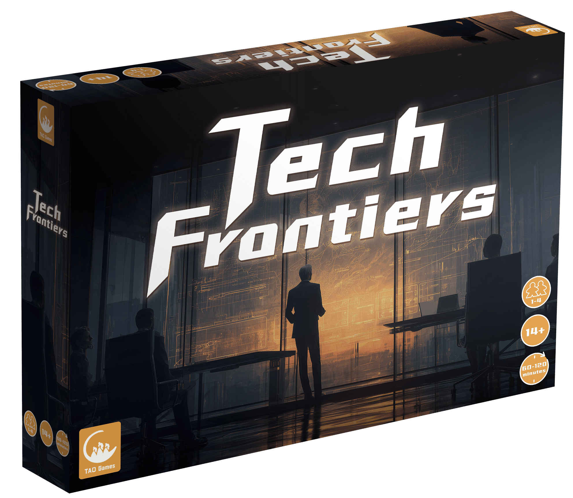 In Tech Frontiers, a 1–4 player semi-asymmetric card-driven game, you will lead your team in one of four industries—Chips, AI, Robotics, or Medicine. Raise funds, build products, win markets… from garage to IPO!