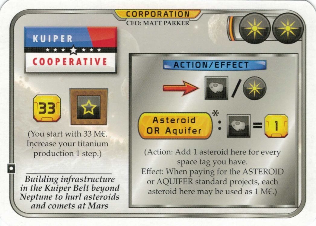 Kuiper Cooperative is a Corporation card with two Space tags.