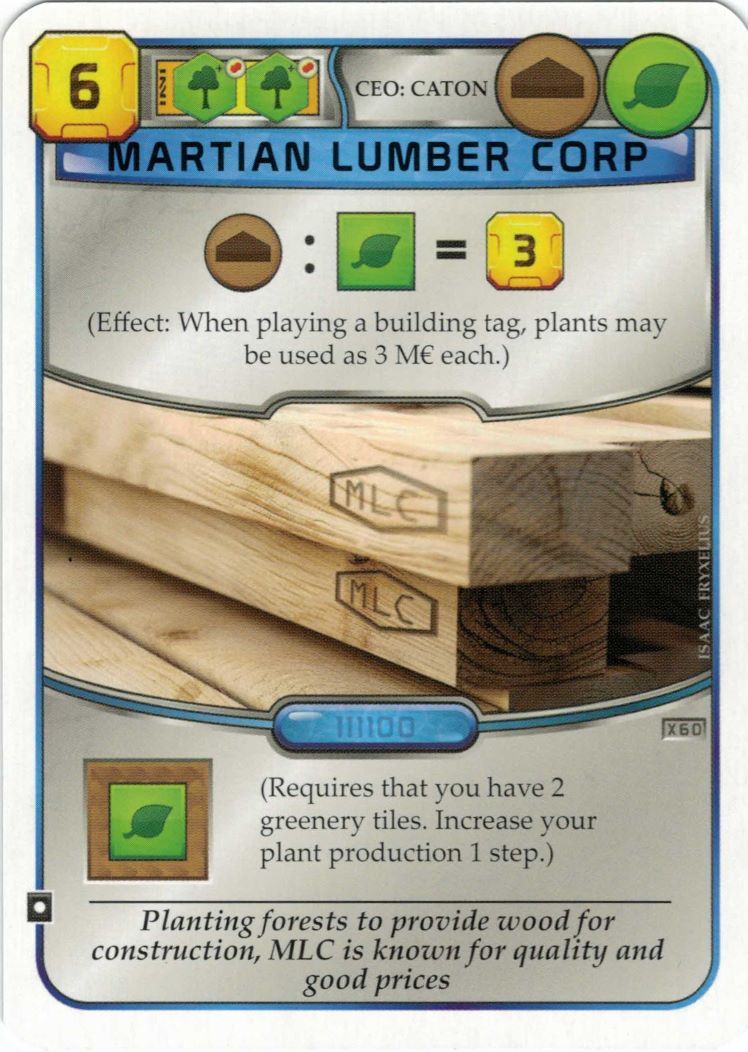 Martian Lumber Corp is an active card with Building and Plant tags.