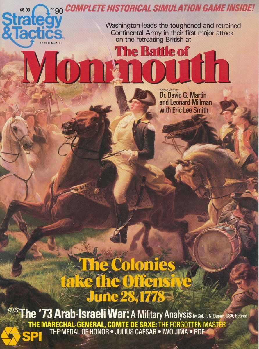 Map terrain has five levels in increments of 30 feet, with each hex spanning 100 yards side to side. Each infantry unit represents a regiment (or several regiments for some Colonial units); each artillery unit represents a battery of two guns; each dragoon unit represents a regiment of cavalry. Turns represent 20 minutes of real time. Three scenarios are provided: one introductory involving the hedgerow battle, and two advanced covering Monmouth Courthouse and the Grand Battle.
