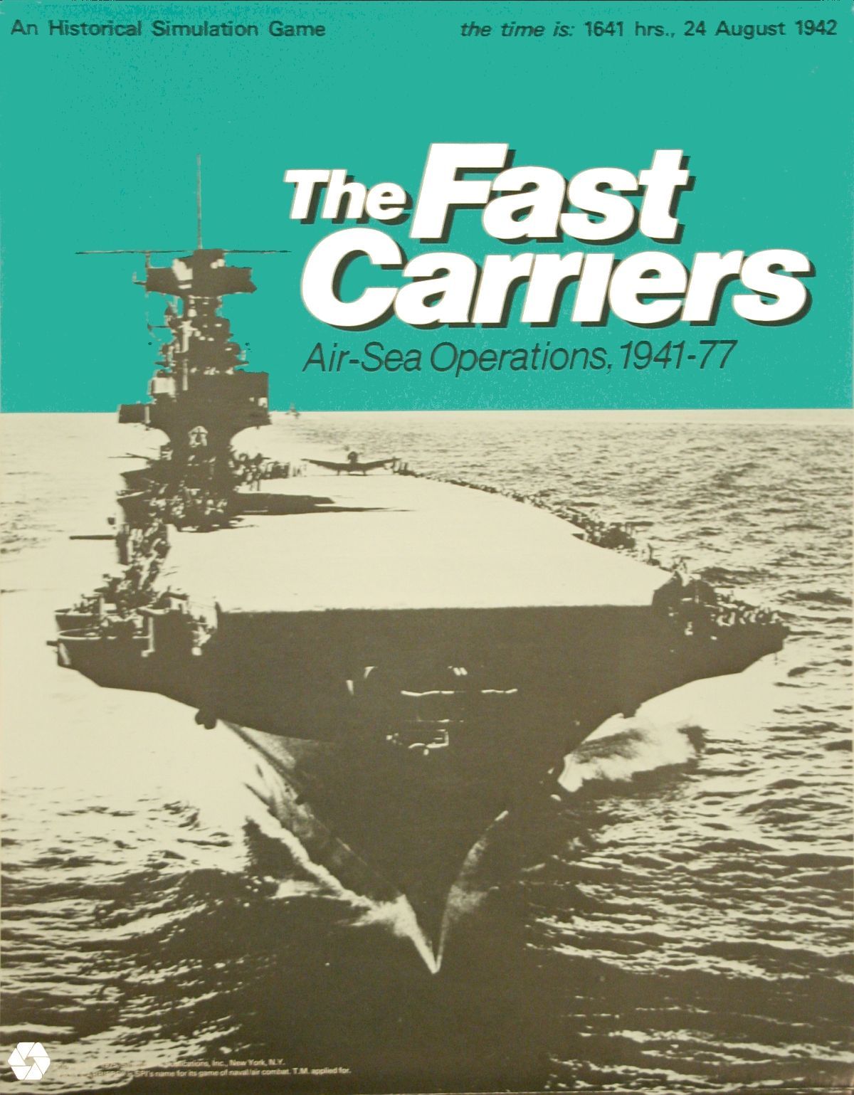 Descrizione: Fast Carriers is SPI's simulation of WWII carrier warfare and it's impact on combat tactics in the pacific. Simple sea/island maps with large hexes are used to position task forces and flight sorties. A place mat for each active carrier is used to track carrier operations. All individual combat planes and ships are represented with search planes abstracted. Tactical air to ship combat is played out on a tactical hex based all sea map with individual plane altitude, angle of attack, and multiple waves of aircraft represented.