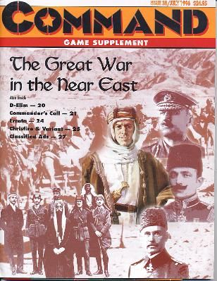 The Great War in the Near East is a stand alone game using the core mechanics of The Great War in Europe (from Command issue #33) and depicting World War I in Palestine, Iraq & on the Turkish Front. The game also can be used as a add on module for The Great War in Europe as the counters have an added diagonal slash on them to identify them as Near East units and contains 400 counters in all. Both games were reprinted as as a The Great War in Europe: Deluxe Edition by GMT Games in 2007.