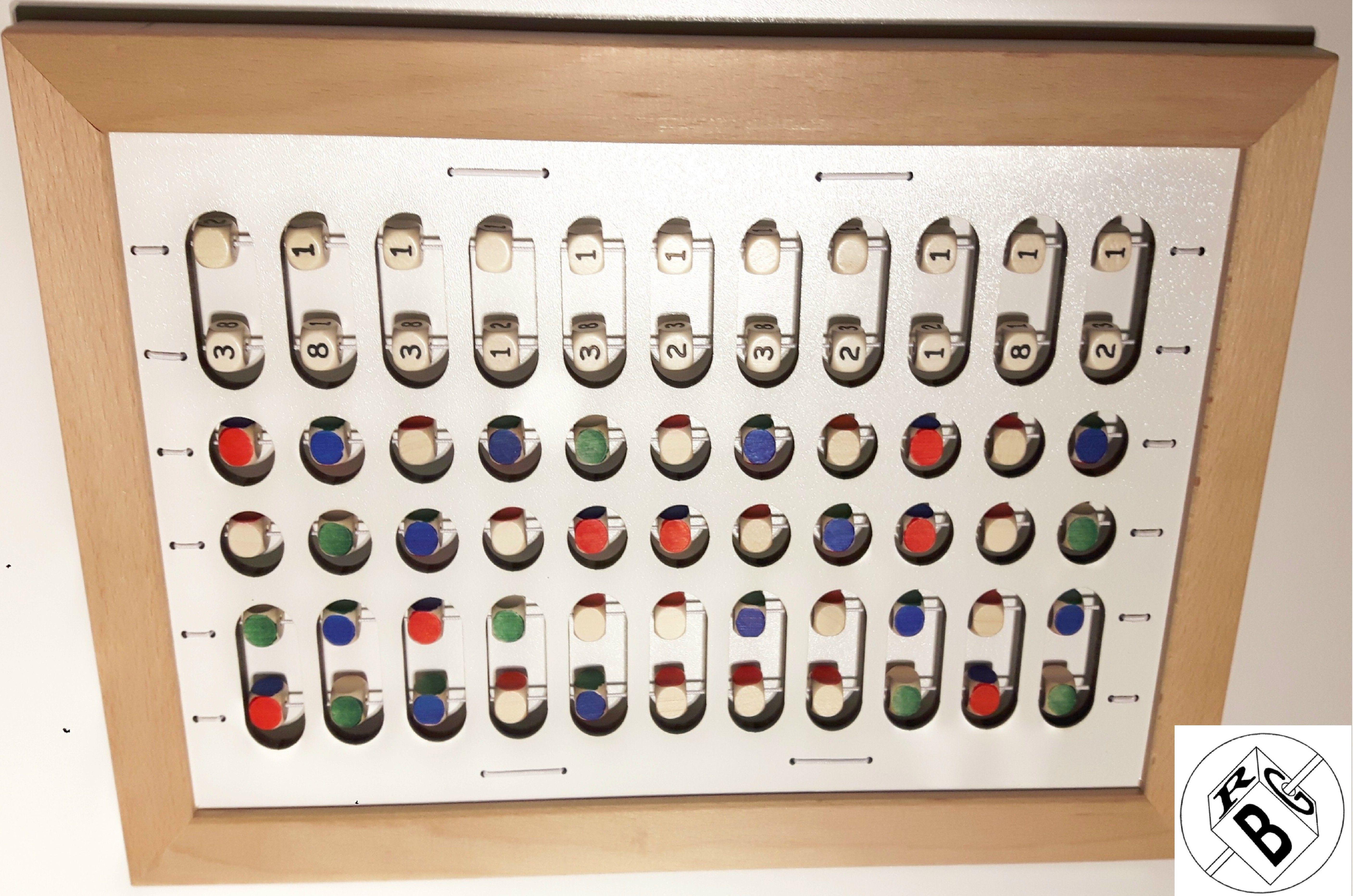 Descrizione: The Powerlineboard analoge Spielkonsole is an analog gameconsol or gamesystem with you can played countless games with an mechanical random board and a few game material that the basic material builds, 27 games and few more variations are in the basic box included, the board has 66 fielddices one fielddice has 4 sides with colours and numbers and the fielddices are rotatable beetween there are fixed by a gum, and you can mixed all 66 fielddices also the complete board with the hand and than you place the board at a surface and you have a random maked playing area at the board