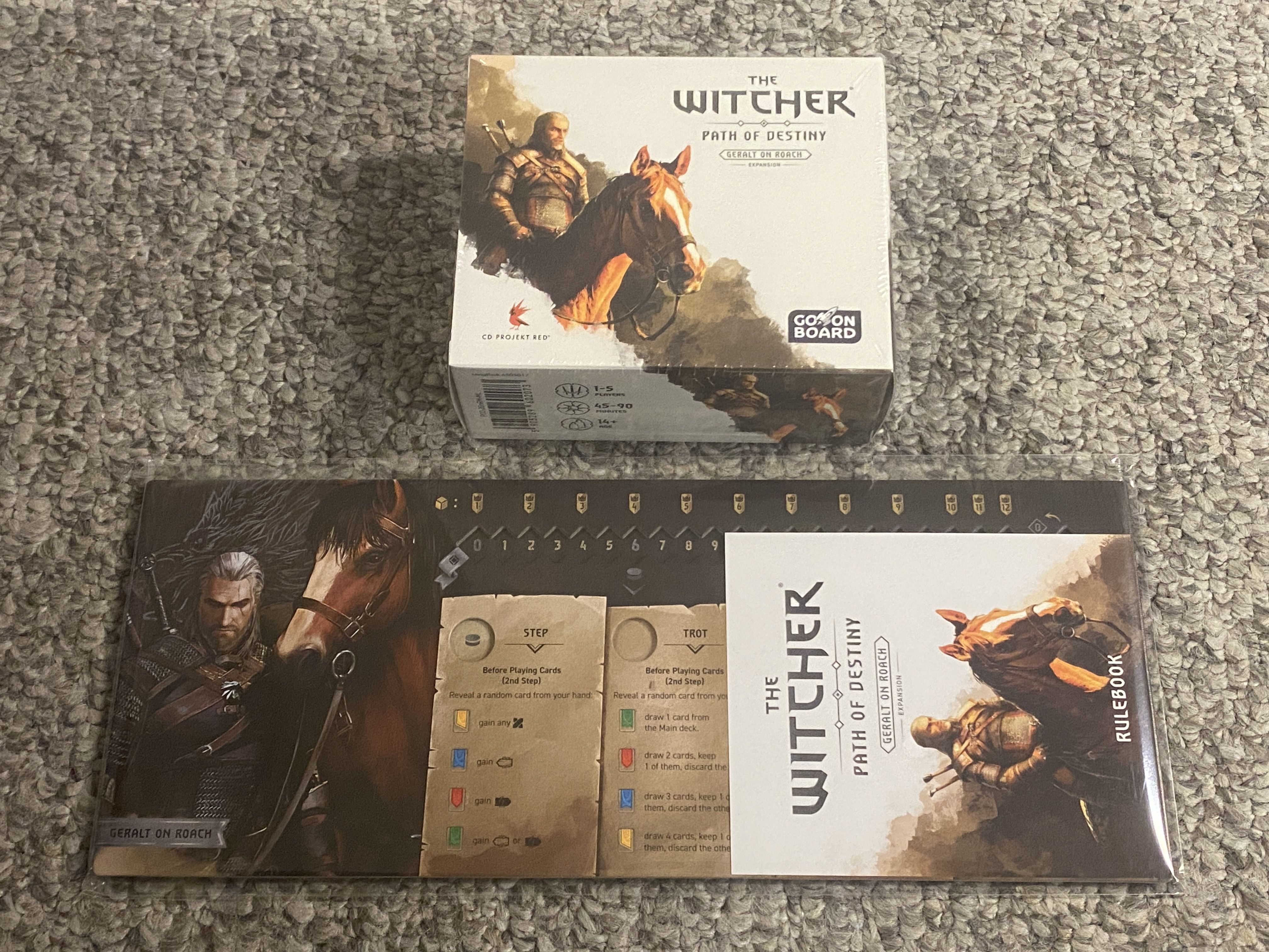 Descrizione: Geralt on Roach is an exclusive playable character with a player board and a plastic miniature.