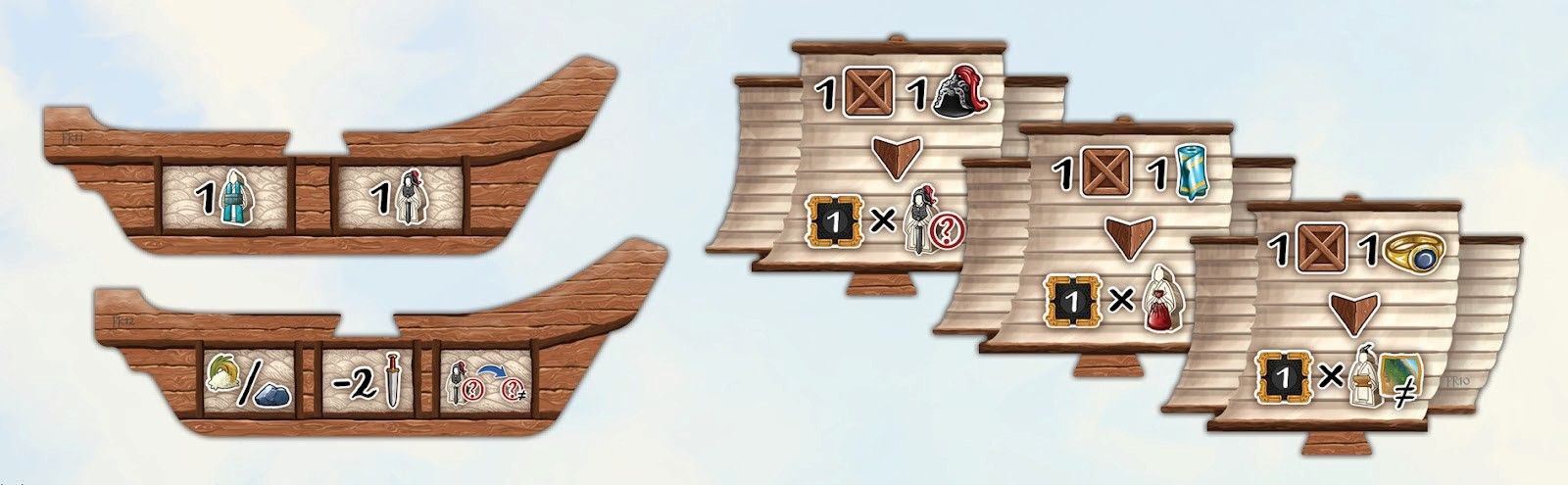Descrizione: Tianxia: New Ships promo adds 2 ship tiles and 3 demand tiles to deepen strategic options. Shuffle them into your game setup for fresh challenges and variety.