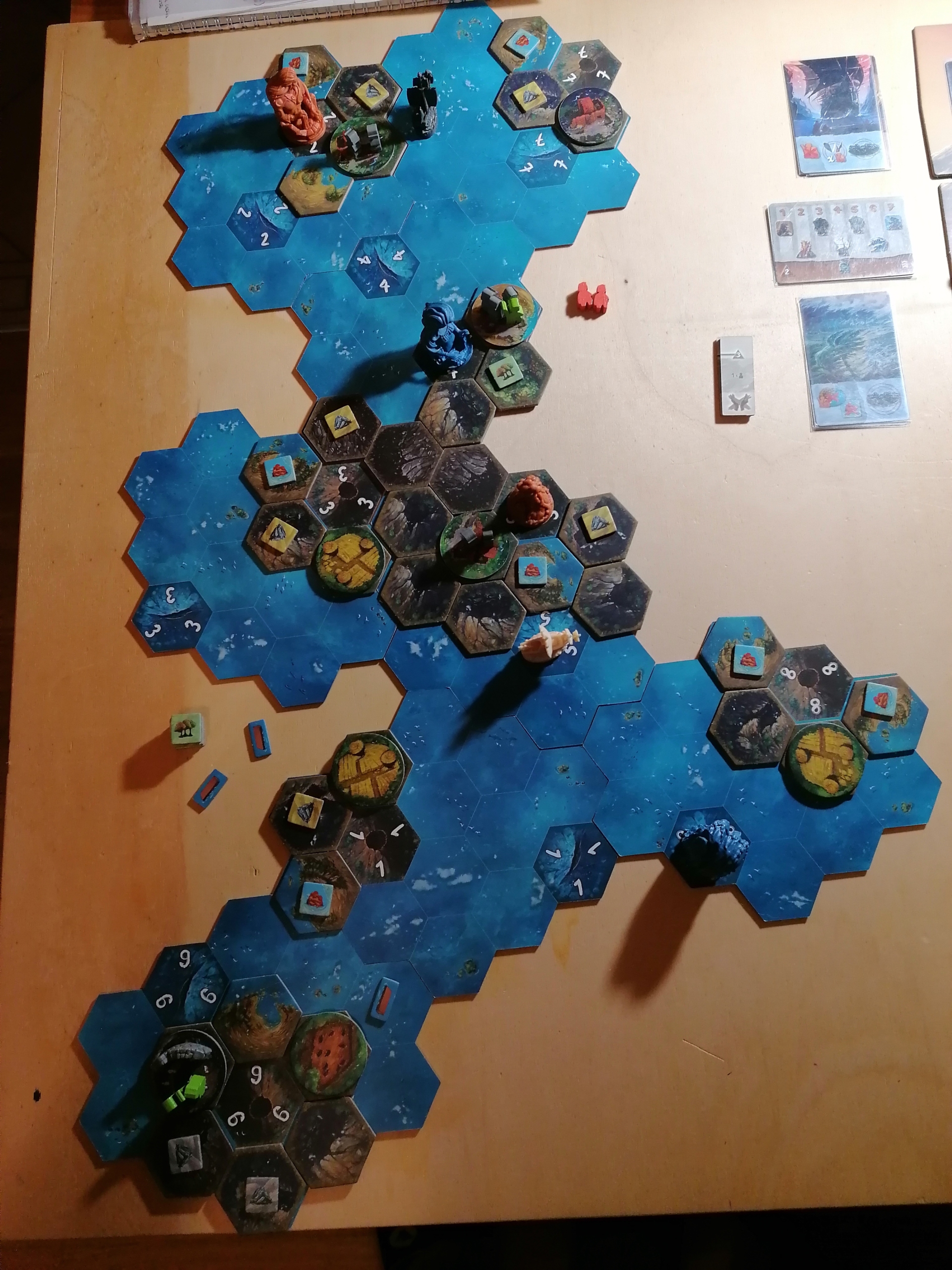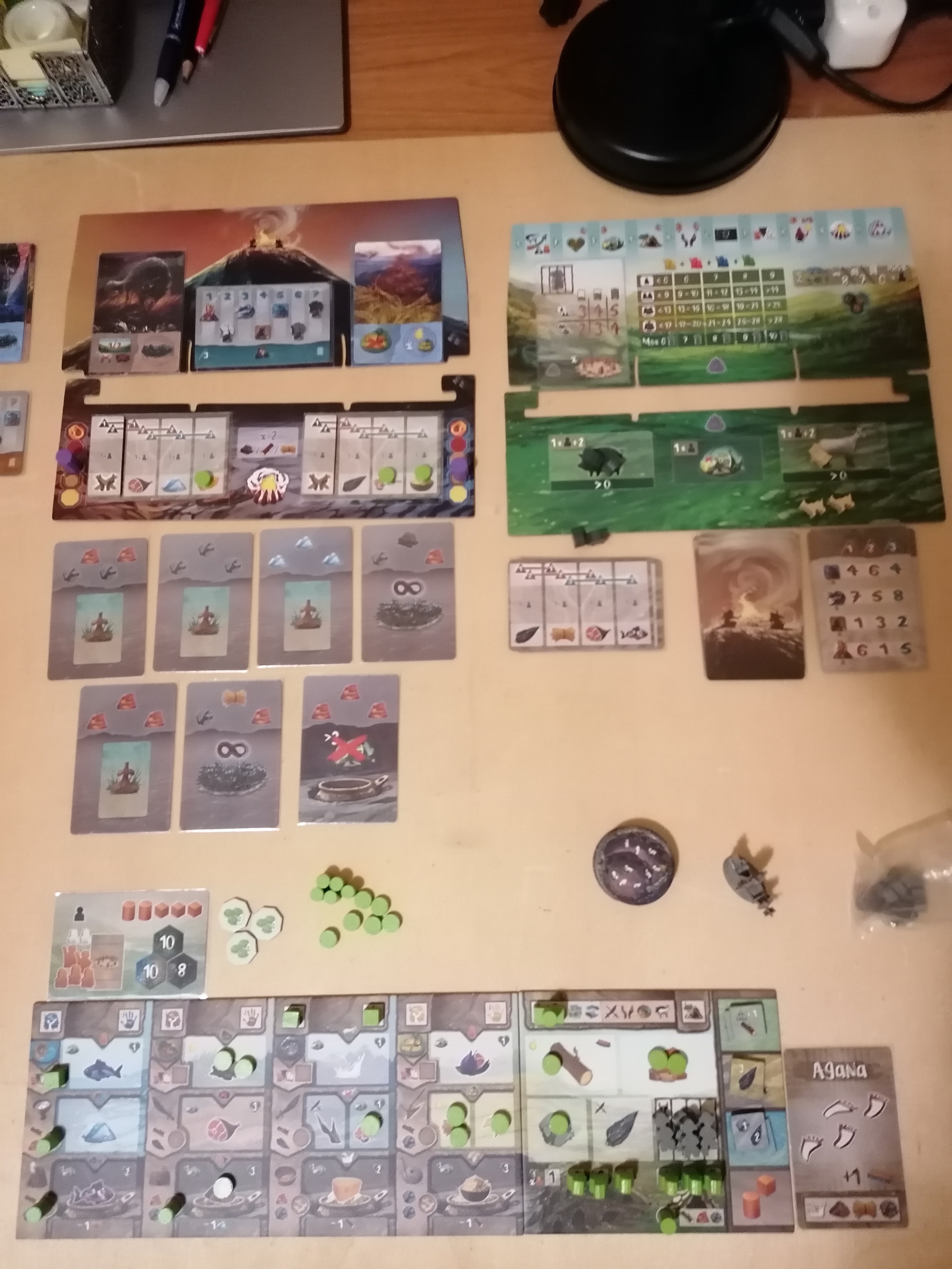 End of the Game: In Cooperative mode, players will check if their collective mission has been achieved. If so, the gods will be happy, and all natives win the game. In Competitive mode, solidarity points will be granted to players that have given more to the community, used fewer resources, or achieved both collective and personal objectives. The player with more points will win the game.