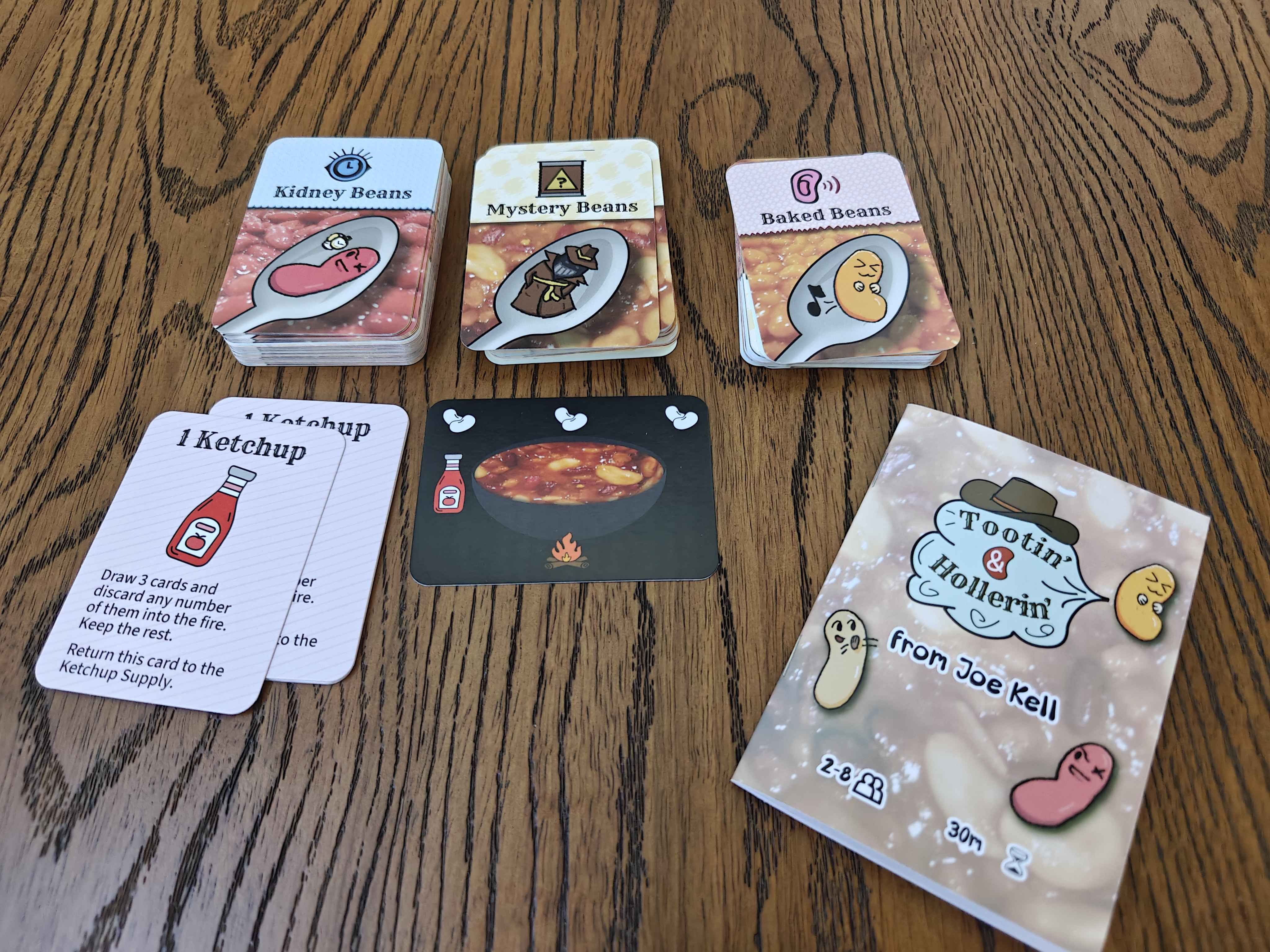 Descrizione: You’re all winding down around the fire after a long day. The Dutch ovens have been sitting in the embers for hours and a heavenly aroma is coming out of them. "What’s for dinner?” you ask. “Calico Beans!” the cook calls back. “Oh, by the way, I think some of the beans were past their expiration date; probably harmless.” Start getting limbered up because shortly after dinner starts, you know the fart contests are about to kick off! Each round you’ll compete to have the loudest, smelliest, and longest fart by eating beans. Be careful, though! If you push too hard your fart may get wetter, and you’ll need to go back to your tent to change your pants. Be one of the first to score 7 or more cards to win! —description from the publisher