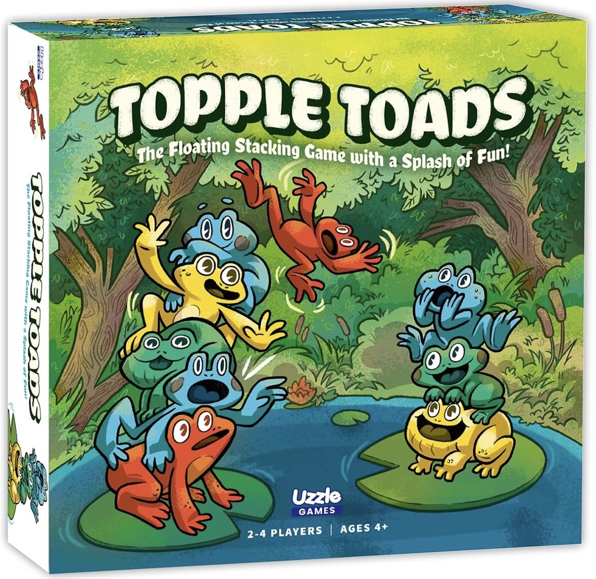 Descrizione: The Ultimate Topple Game: Carefully stack toads without letting them fall into the pond. Each time a toad falls, you earn a Splash Token. The player with the fewest Splash Tokens at the end wins – so keep your balance and watch your toads! How to play: Step 1: Fill the pond with water and place all platforms in the corners. Hand the tweezers to the youngest player. Step 2: Flip the top card of the deck and place it on the discard pile. Step 3: Use the tweezers to pick up a matching toad and carefully stack it on a platform or toad of the same color. Step 4: If any toads fall, take a Splash Token and remove fallen toads from the pond. Step 5: Pass the tweezers to the next player. Play continues until someone gets their second Splash Token. The player with the fewest Splash Tokens wins! —description from the publisher