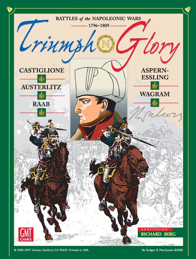 Descrizione: Triumph & Glory belongs to the GMT Games 'Gameplayer's Series' which has playability as its main objective. The system was taken over by Frederic Bey for his "Jour de Gloire"-system and again used for the GMT game "Borodino: Battle of the Moskova, 1812".