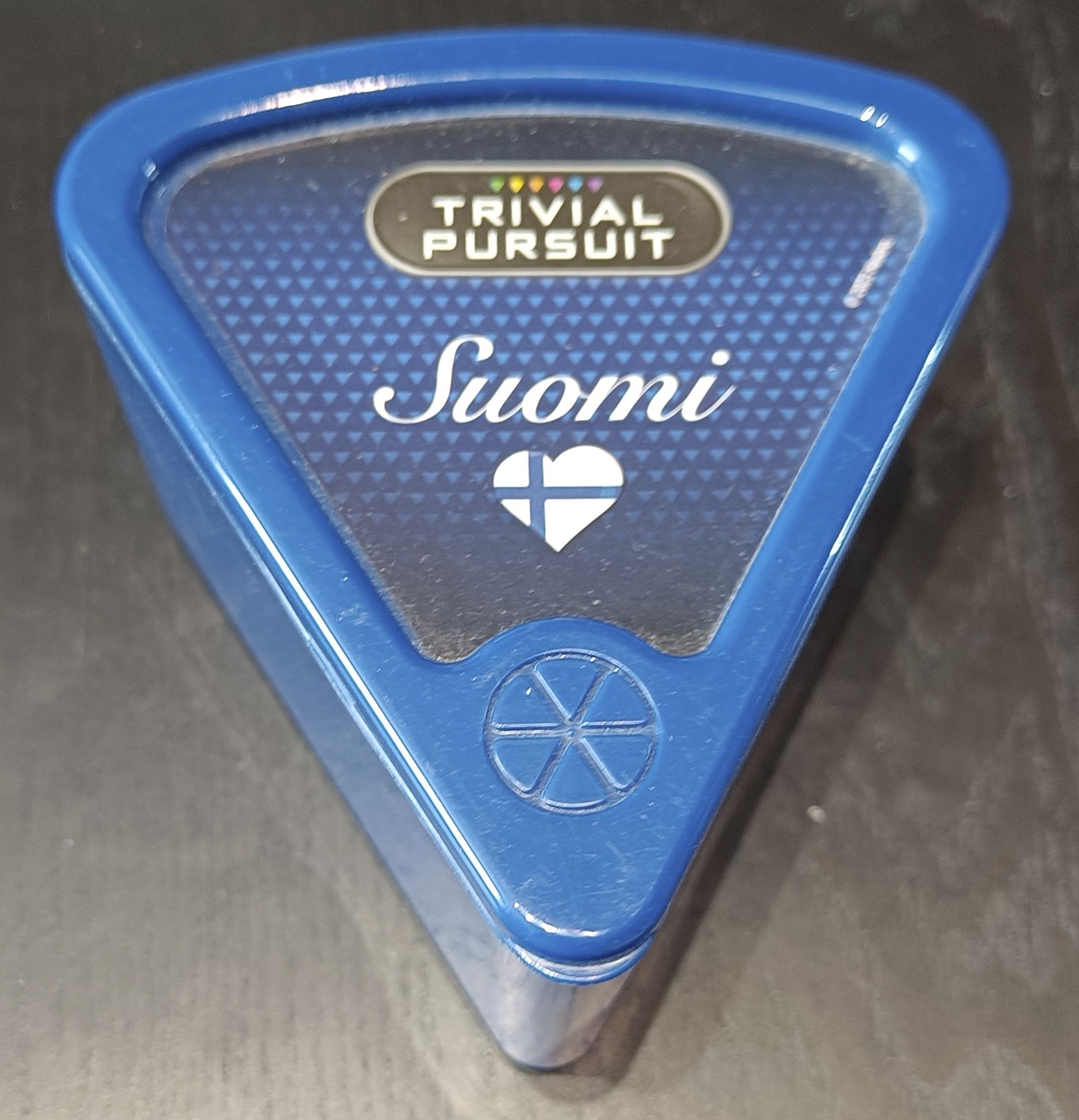 Descrizione: This is a game in the "Bite-Size" range of Trivial Pursuit games. Trivial Pursuit: Suomi – Bite Size is intended as a portable travel game. The game is packaged in a wedge ("piece-of-pie") shaped box.