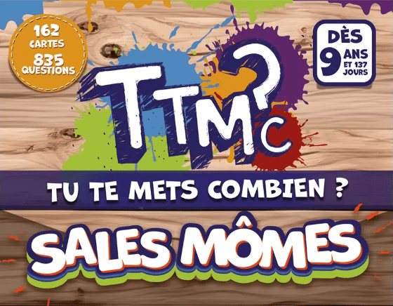 Descrizione: Have you been waiting for this? It's finally here! TTMC?: Tu te mets combien ? - Sales Mômes, a fun and lighthearted variation on the party game TTMC?: Tu te mets combien ? for all children aged 9-13!