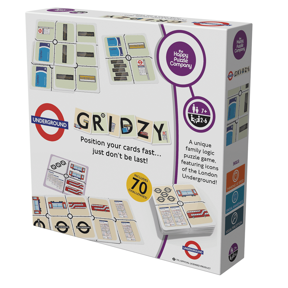 Descrizione: Position Your Cards Fast… Just Don’t Be Last! A really fun, original card game in which players start with four square cards that contain a total of 16 icons. Race your opponent(s) to position your 16 icon images, so that only nine of them are visible in a 3x3 grid, perfectly matching the nine icons that appear on the challenge card. Score extra points for finishing first and for keeping your icons connected. Underground Gridzy includes 60 regular challenges and ten ‘expert’ challenges.