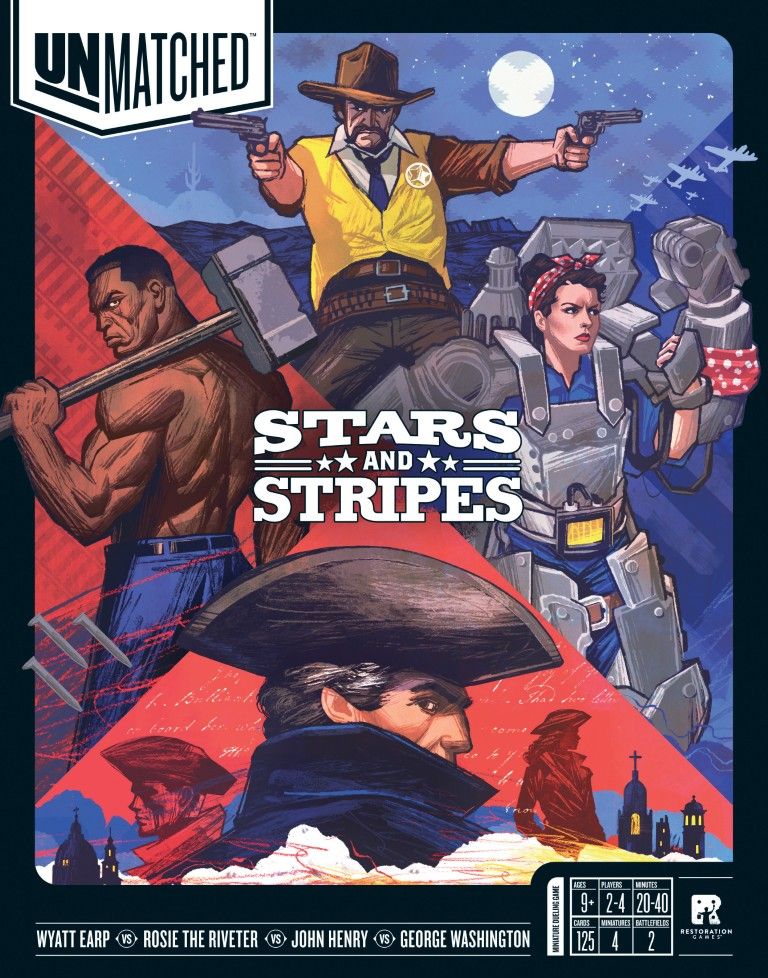 Descrizione: Four fierce fighters from American history join the Unmatched Universe. Stars and Stripes includes 3 heroes from the design contest including the highly anticipated Rosie the Riveter.