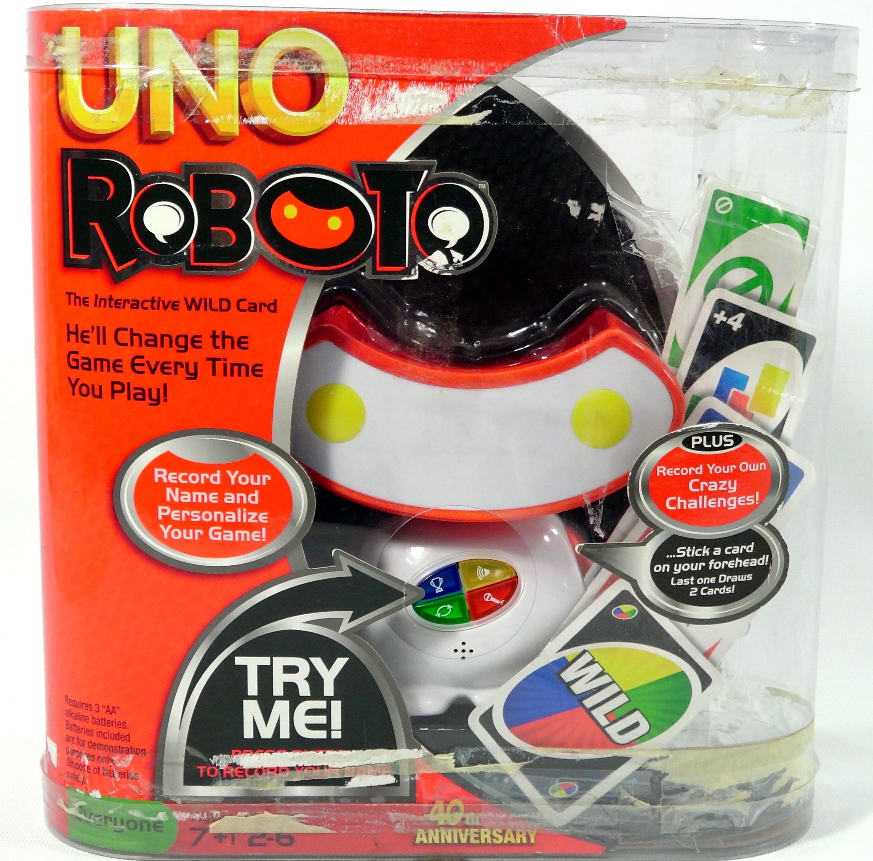 After capturing rules and names, UNO Roboto gets the party started with surprise commands and funny phrases that change the outcome of the game! As the game progresses, players must keep up with UNO Roboto as he randomly selects the games twists and turns.