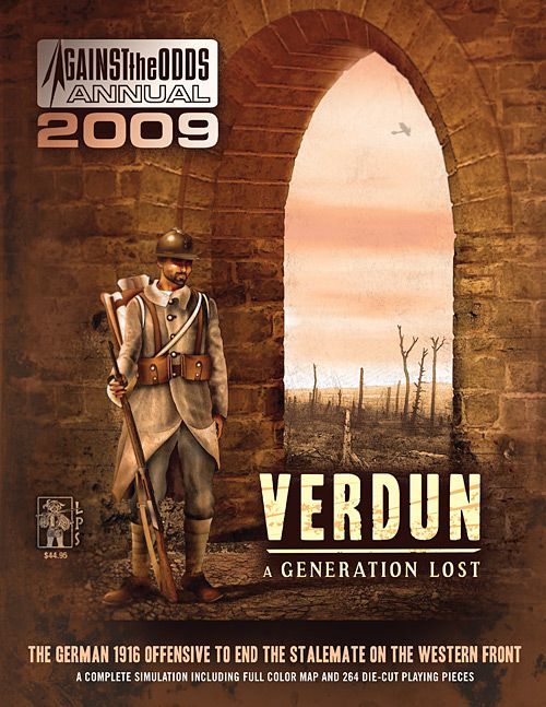Designed by Roger Nord, Verdun: A Generation Lost is based on the same design as his other WWI game which appeared in Against the Odds magazine #11, The Big Push: The Battle for the Somme. Verdun: A Generation Lost features a 22" by 34" map that, like The Big Push, uses squares to regulate the game's functions, 264 large counters, and approximately 20 pages of rules and charts. Rules cover artillery, defensive fire, and close assault attacks, various types of weaponry, and there are six smaller scenarios covering pivotal aspects of the battle.