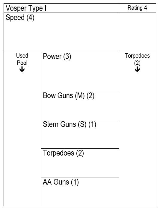 Equipment you need is a number of small scale Ship Models (1/300 scale), Aircraft Models, Torpedo Markers, Dice (D6), Ship Cards, three sets of different Colour Counters, Position Cards, 30 degrees turn Template, Ruler and a pack of Playing Cards.