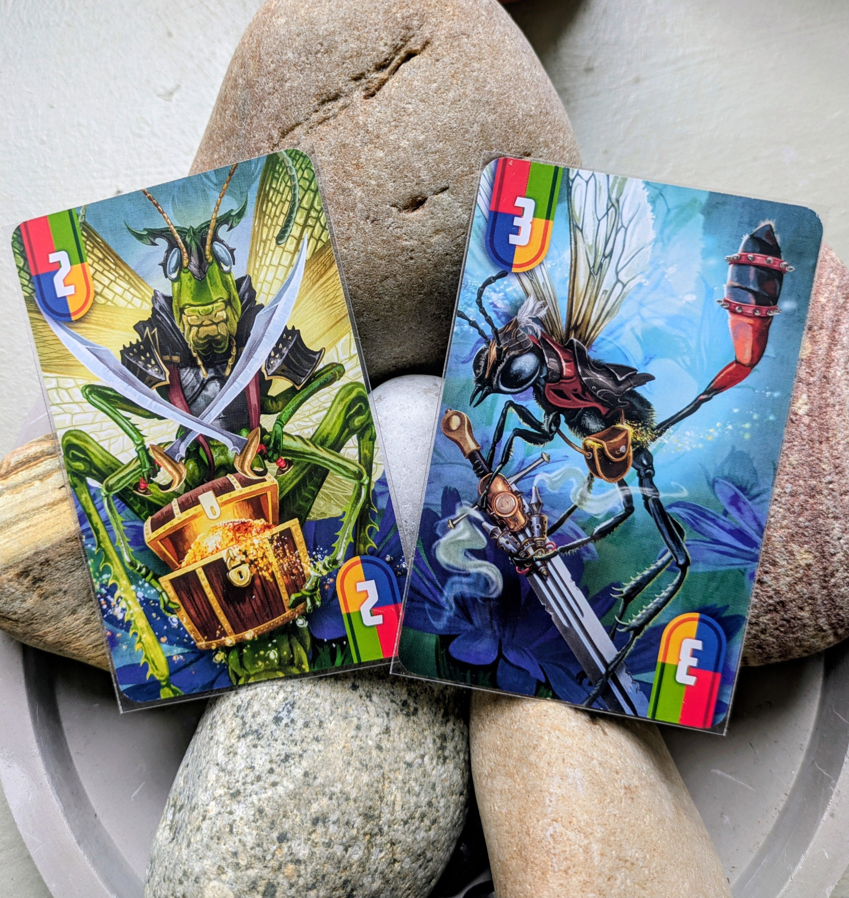 Descrizione: Two special promo cards for the Polish version of Loot (W pył zwrot. These two cards act as jokers with values of 2 and 3 (i.e. one wild 2, and one wild 3). They can be placed on any already played attack of any suit to continue that attack. A joker card can also be played as the first card to attack a flower, with the colour of the attack being determined by the suit of next card the player places upon the joker. These two cards were bundled with W Pył Zwrot when ordered directly from the publisher Muduko.