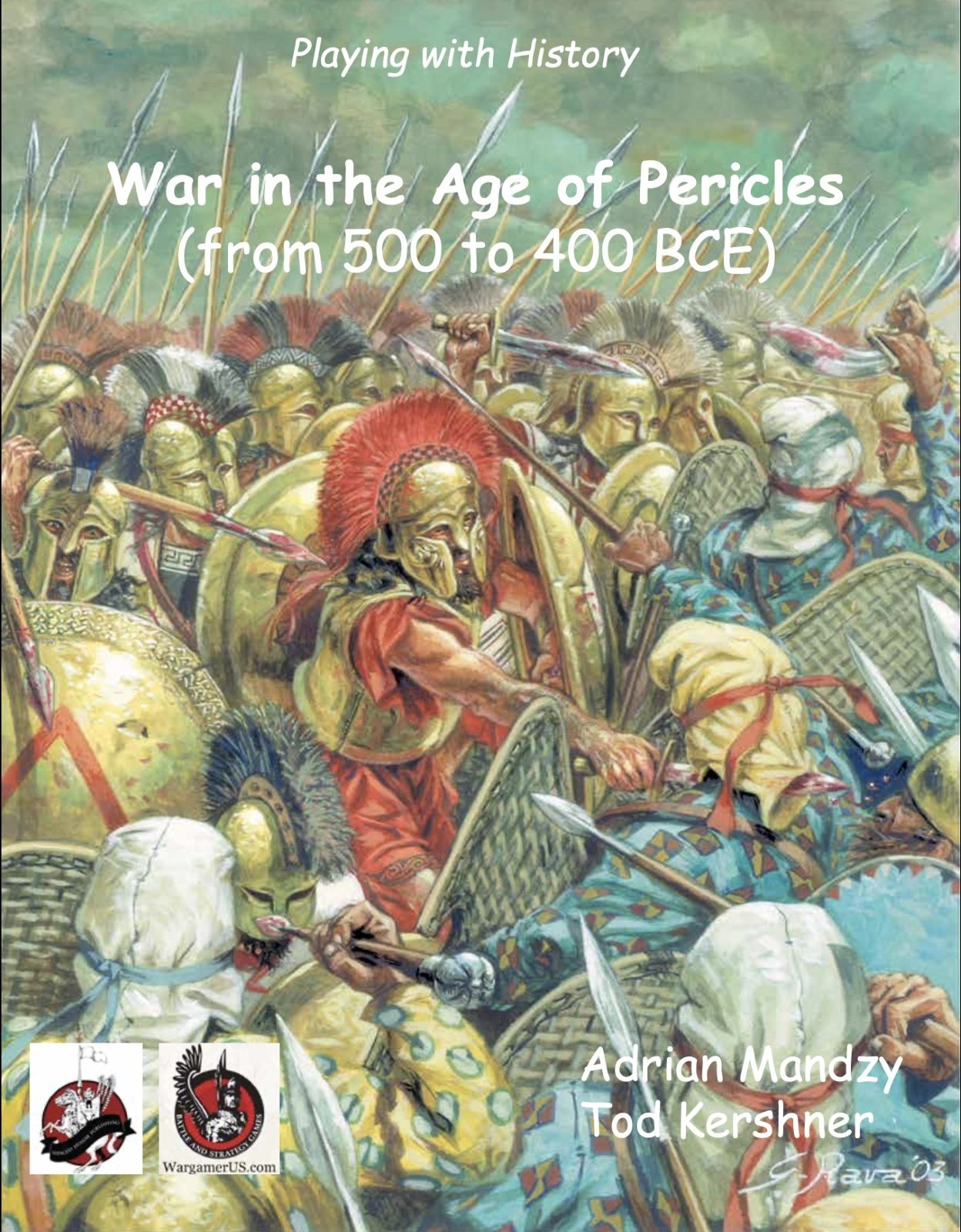 Descrizione: War in the Age of Pericles was designed for the numerous small battles that took place in the Mediterranean Basin, these rules focus on providing a few hours of fun and entertainment. The game mechanics are straightforward but contain enough nuances to be stimulating. The Hand of Fate cards (available separately), provide an additional level of unpredictability. Designed for 28mm but can be played for a variety of scales. Hoplites units are 16 figures strong, skirmish units usually are 8 figures. This 24 page rulebook includes 12 individual army list, including: Athens, Carthage, Celts, Corinth, Egypt, Etruscans, Persia, Rome, Scythia, Sparta, Syracuse, and Thebes. —description from the publisher
