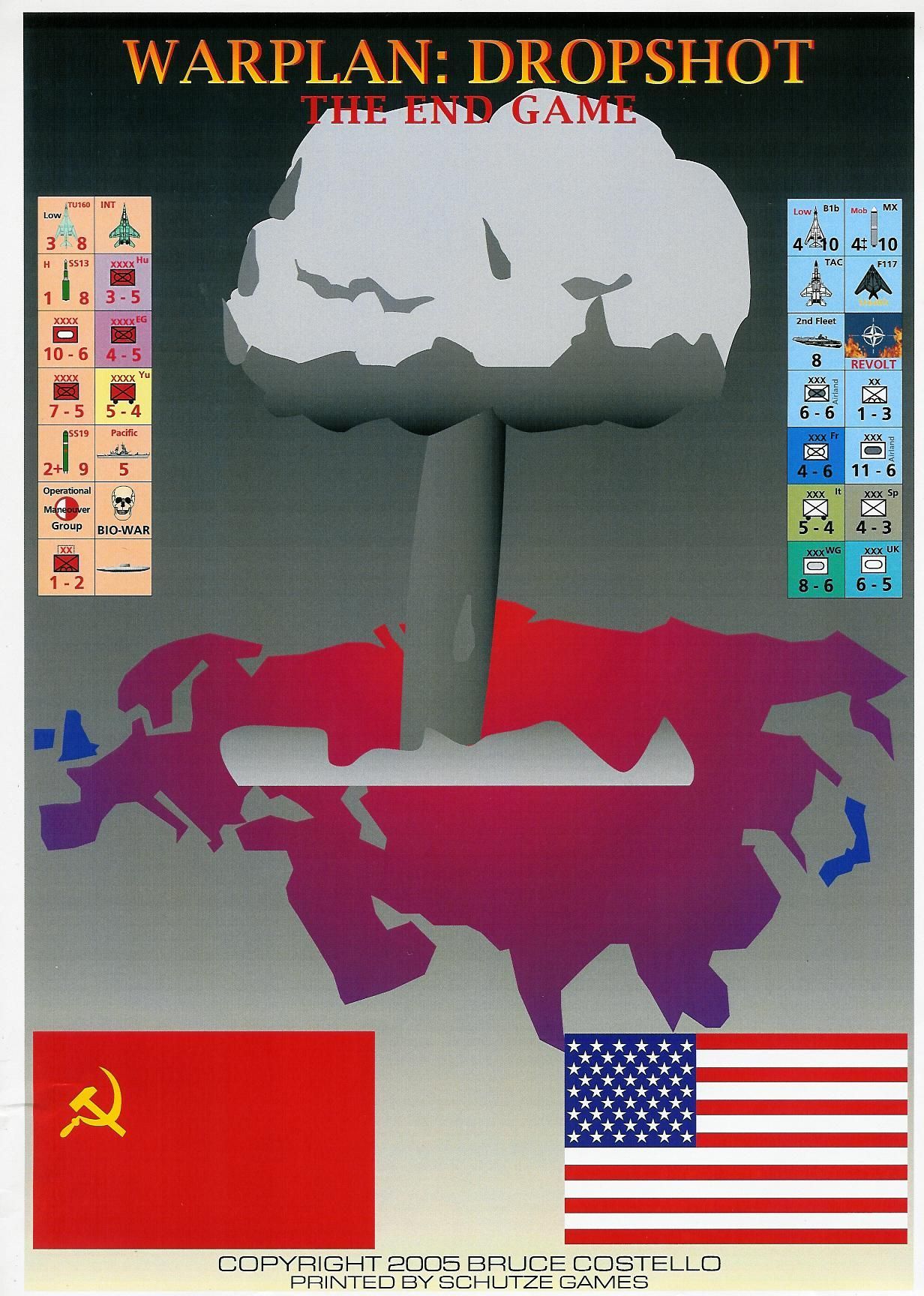 Dropshot III: The End Game scenarios: In "Middle East, 1973" the US and the Soviet Union get too involved with the Yom Kippur War. In "1976 - Bolt from the Blue" Kremlin hardliners opt for a preemptive war while everyone is taking détente. "December Surprise - Iran, 1979" has President Carter invading Iran and the Soviets having to react. In "Solidarity - Poland, 1981" the labor movement is crushed and the West reacts. In "Deep Paranoia" a NATO exercise pushes the Soviets too far. "Hardliners Last Gasp, 1987" supposes an alternative end to the Cold War.
