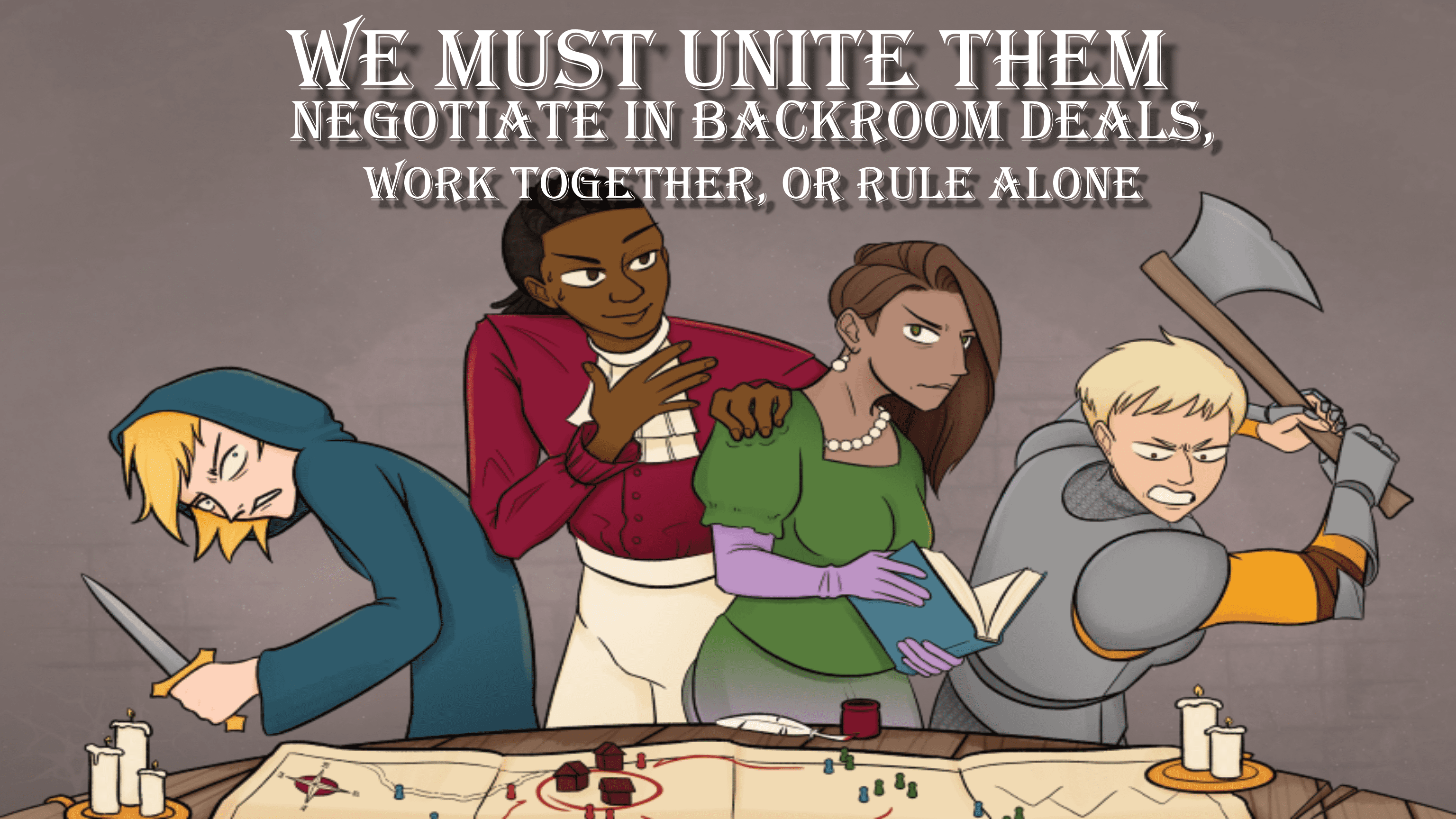 Descrizione: We Must Unite Them is a campaign game about, politics, trust, and deception. Each player acts as a Royal House in a shared Kingdom in a time of great change as war looms upon the horizon. Each house sees a potential to twist the world into their own shape and agenda, but cannot do it alone. Who will rise and fall in a game about deception and lies?