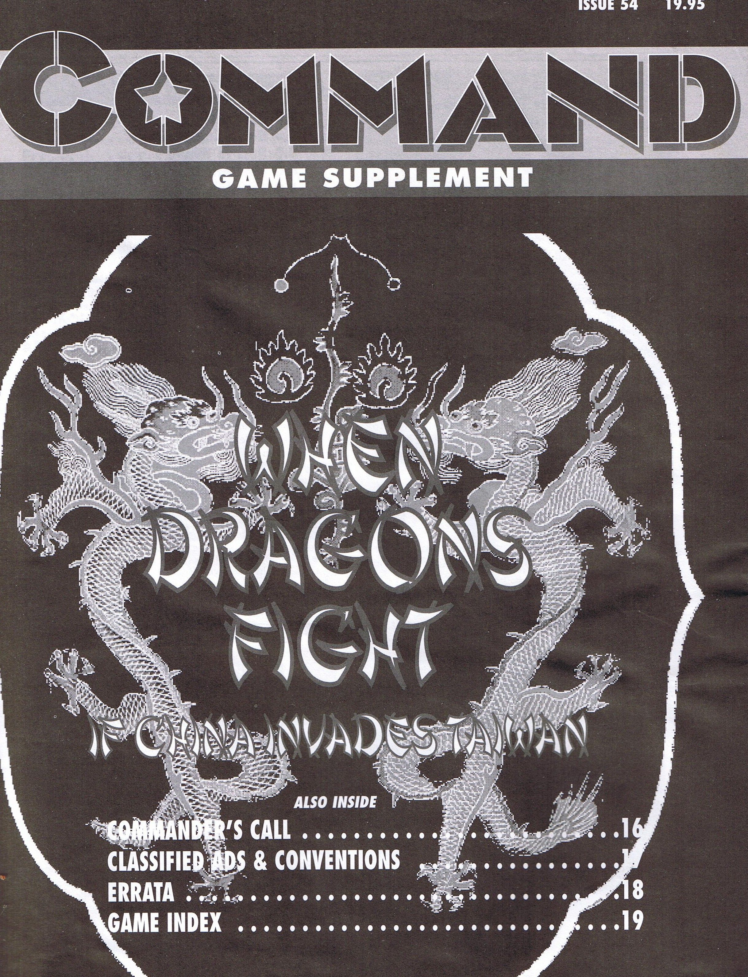 Descrizione: When Dragons Fight is an operational level game on the hypothetical invasion of Taiwan by the Peoples Republic of China (PRC) circa 2003-2004. The simulation is based on the premise that the PRC opens with a massive missile attack and is able to use their economic and military leverage to keep America out of the conflict. With no foreign power intervening, the PRC must conquer the island within 15 days or the Republic of China (ROC) wins. The war itself is conventional and fast-paced.