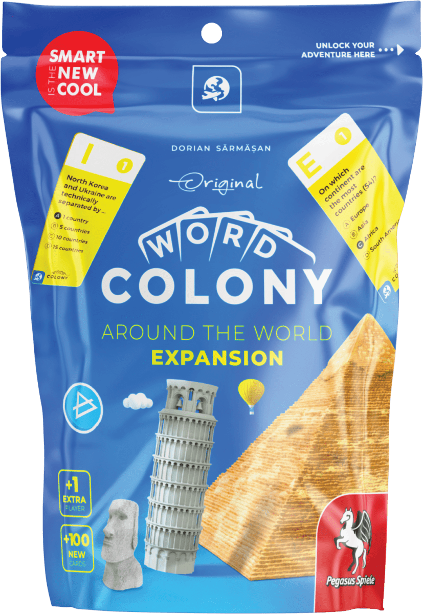 Descrizione: Word Colony: Around the World contains 90 letter cards with new trivia questions that focus on distant locales, extraordinary structures, and far-away places. Shuffle them into your Word Colony game to provide more variety, or use them on their own with the components from the base game.