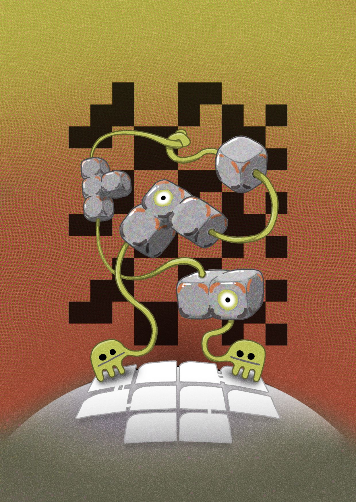 130 pages of full-colour illustrations, mixing hand drawn minimalism with glitchy digital maximalism;
