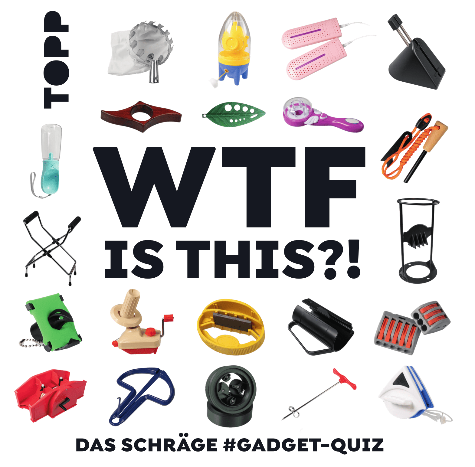 Descrizione: The game consists of 100 cards. Each of them shows a strange item bought on the internet. One player takes a card and looks at the back (if someone knows what the item is for, they will fill that role). The backside of the cards shows the use and some more information on the item.