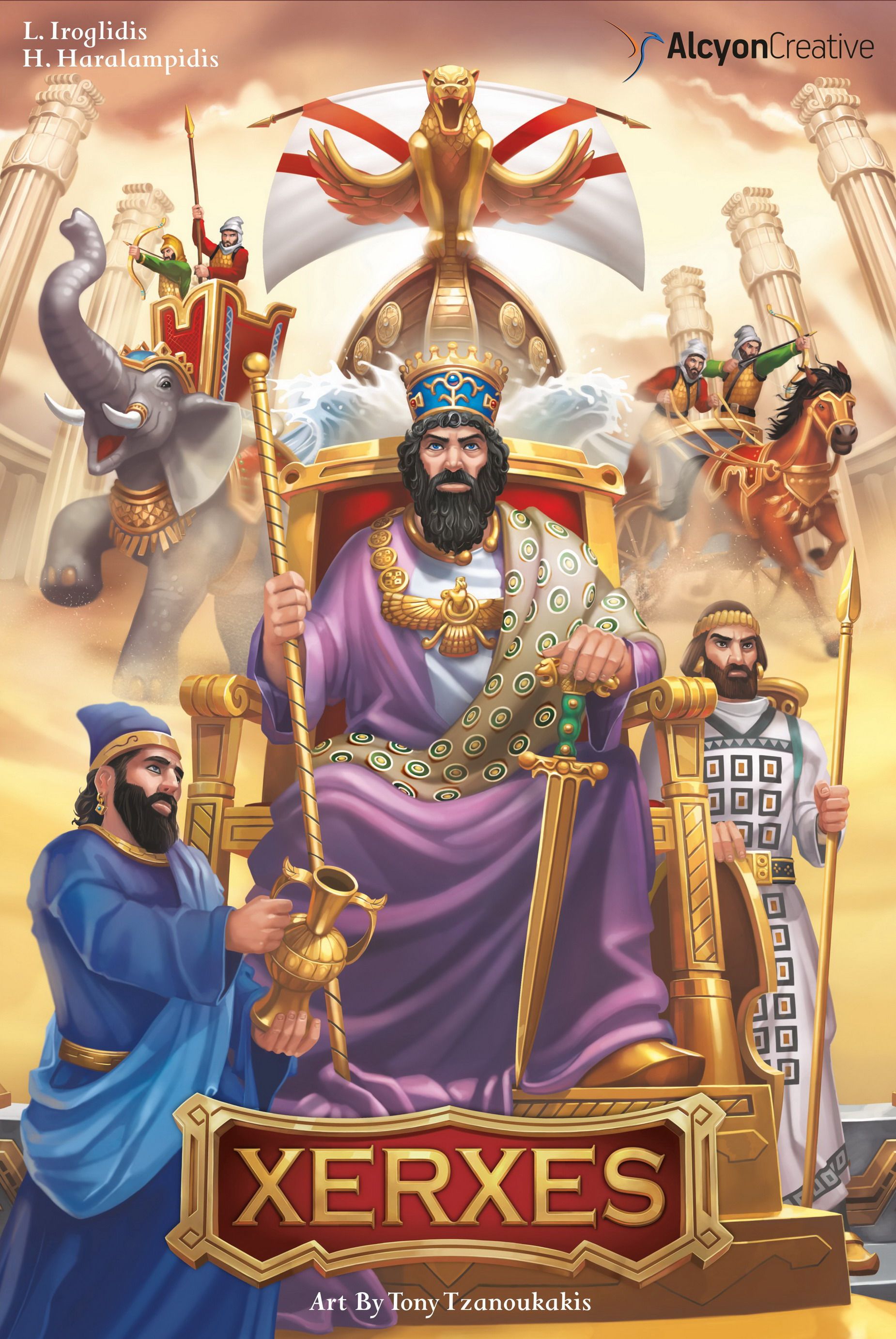 In this resource management game, each player assumes the role of one Satrap, each with his own area, special ability and characteristics. Every turn the players are trying to collect resources for taxes, construct buildings or launch campaigns.The player has a number of Tax and Campaign cards to resolve in order to satisfy Xerxes and earn his favor (counted as Victory Points).