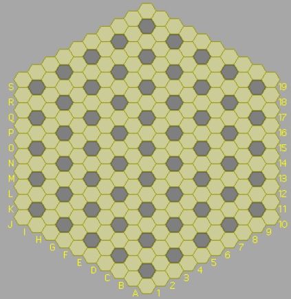 Descrizione: Played in a HexHex board of size 10, starting with a pattern of neutral stones already in place.