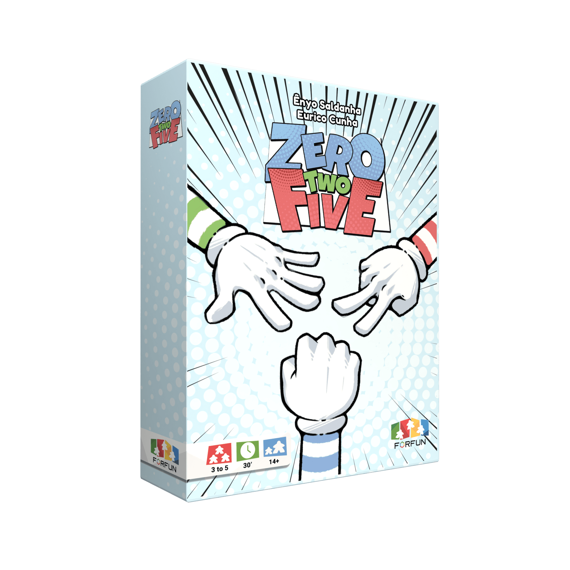Zero Two Five is a card game in which your objective is to win 0, 2 or 5 tricks(the numbers represented by Rock, Scissors and Paper respectively). The first player to get three score tokens or the player who gets the most points is the winner.